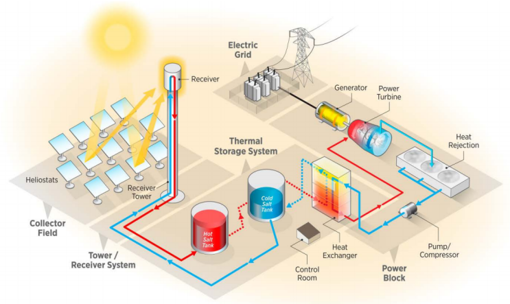 圖3. 熔鹽儲熱技術(shù)是高效、可靠、經(jīng)濟的大規(guī)模儲存太陽能的方法。