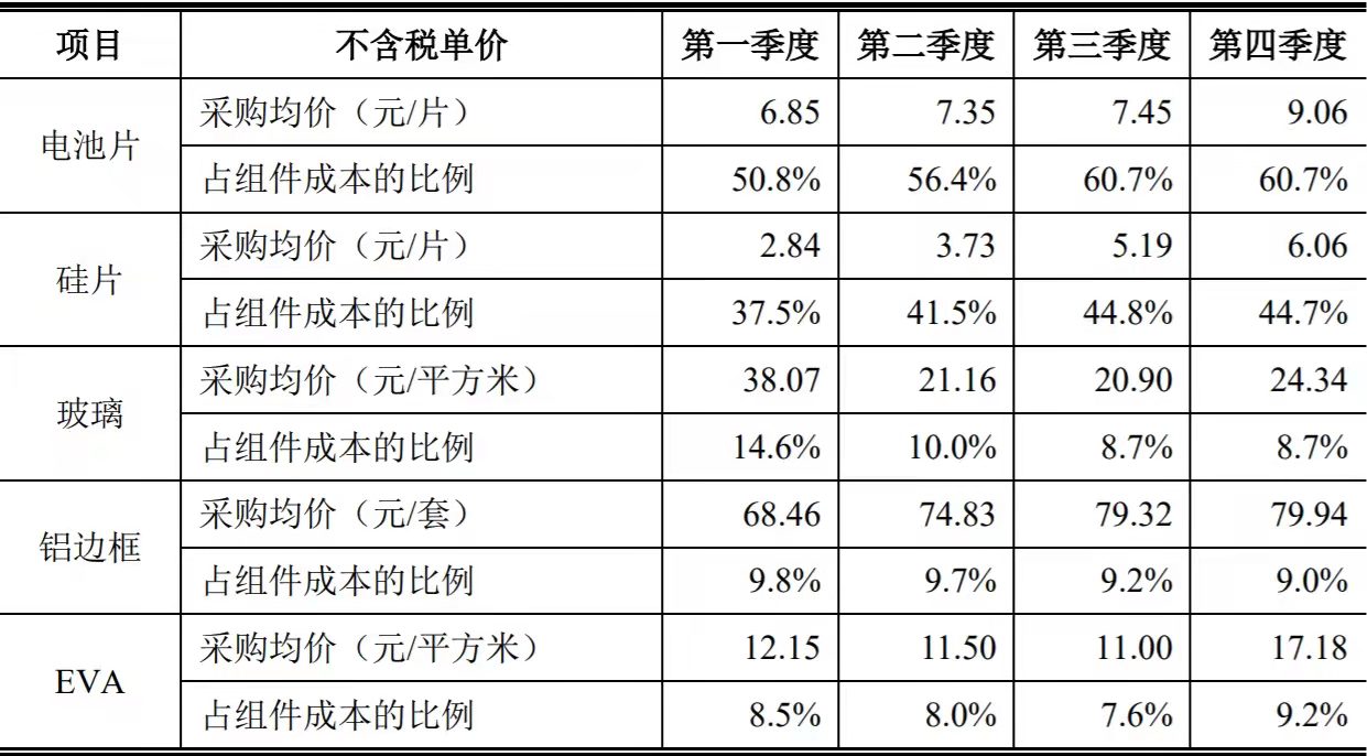 運費高位運行、高硅料價格抑制的組件需求及2021年全年低價組件的擾動、開工率不足導致的成本上行等因素。