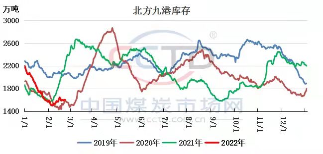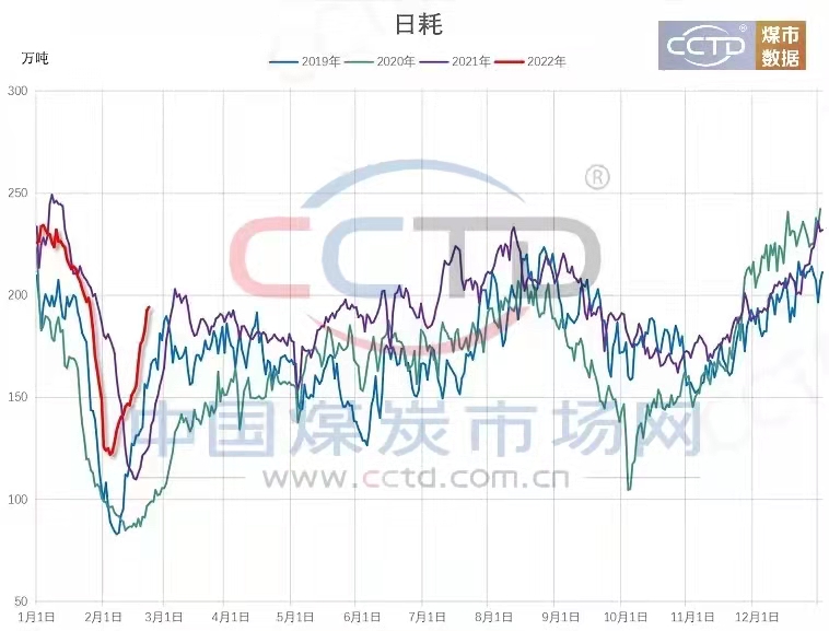 目前,下游電廠采購需求陸續(xù)增多,港口市場情緒升溫,市場活躍度提升,2月底前,國內(nèi)大部地區(qū)氣溫偏低,尤其華南沿海地區(qū)低溫偏低明顯,日耗表現(xiàn)強勢,而進口煤優(yōu)勢不再,國內(nèi)煤成為拉運重點。