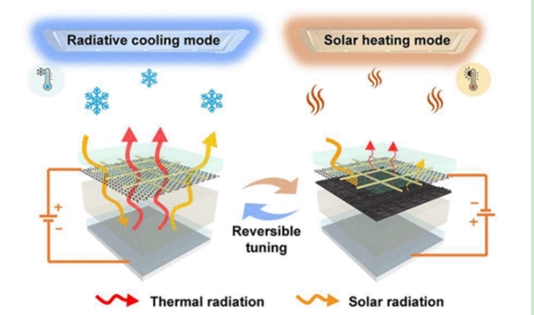 電致變色協(xié)同太陽(yáng)能和輻射熱管理示意圖