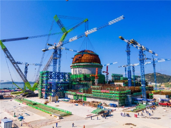 漳州“華龍一號”工程成功實踐“開頂法”施工,1號機組穹頂?shù)跹b提前完成,首創(chuàng)鋼襯里全模塊化及建安一體化施工技術,在提前引入設備的前提下,開創(chuàng)單臺機組自開工至內穹頂?shù)跹b24.5個月最短工期紀錄,創(chuàng)造了全球三代核電機組建造領先業(yè)績;