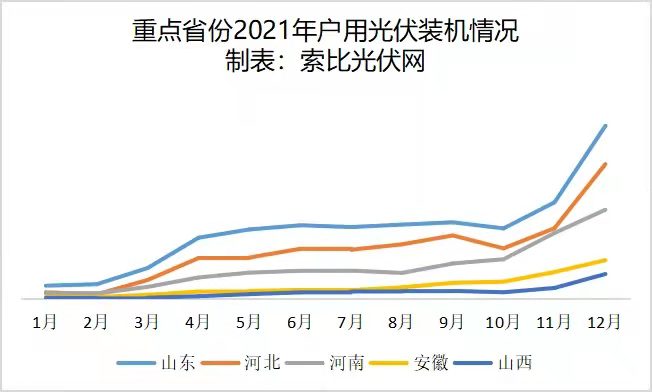 從2021年各省戶用光伏裝機(jī)規(guī)???,山東、河北、河南依然是最核心的三個主力市場,安徽、山西、江西、福建、江蘇等5個省也實(shí)現(xiàn)了裝機(jī)超400MW、占比超2%的目標(biāo)。