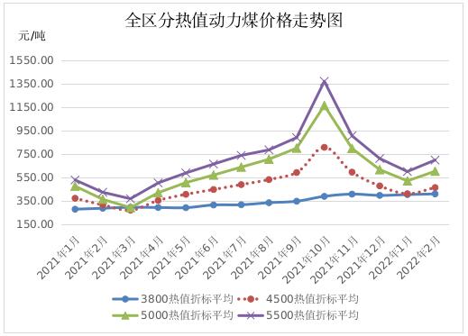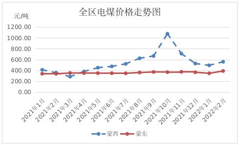 內(nèi)蒙古自治區(qū)發(fā)改委消息,2月份,受低溫天氣、非電需求較好拉動(dòng),全區(qū)動(dòng)力煤價(jià)格小幅上漲。全區(qū)動(dòng)力煤月度平均坑口價(jià)格為421.18元/噸,與1月份相比(下稱環(huán)比)上漲6.80%,與2021年2月份相比(下稱同比)上漲47.35%。其中,東部褐煤平均坑口價(jià)格為361.71元/噸,環(huán)比上漲1.20%,同比上漲39.72%;鄂爾多斯地區(qū)動(dòng)力煤平均坑口價(jià)格為600.00元/噸,環(huán)比上漲16.32%,同比上漲65.95%。