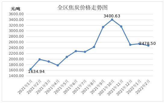 此外,2月份受假期、環(huán)保等因素影響,焦炭?jī)r(jià)格先降后漲,全區(qū)焦炭月度平均價(jià)格為2478.50元/噸,環(huán)比下降2.50%,同比上漲24.80%。3月份,隨著下游鋼廠產(chǎn)量增加,焦炭需求將繼續(xù)向好,但受疫情影響,煉焦用煤進(jìn)口量存在不確定性,煉焦用煤市場(chǎng)供需偏緊將推高焦炭成本。綜合來(lái)看,3月份焦炭?jī)r(jià)格將有所上漲。