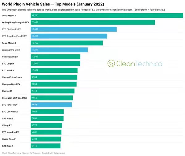 此外,值得一提的是,在2年前,全球新能源銷量榜單中,只有兩款中國車型上榜,在去年1月份,只有9輛,而在目前,前20陣營中,有17輛中國車型,也難怪該榜單如今已經(jīng)變成了“中國新能源汽車銷量榜”。