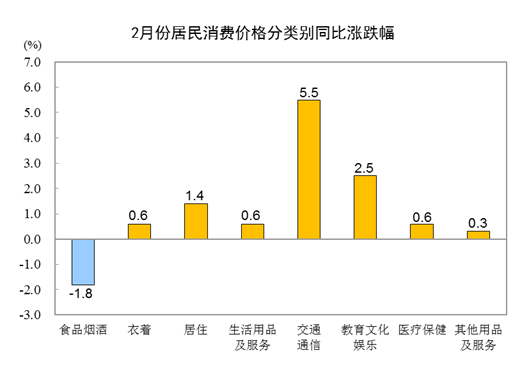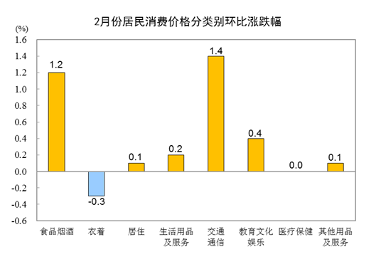 2月份居民消費(fèi)價(jià)格同比上漲0.9%