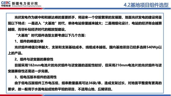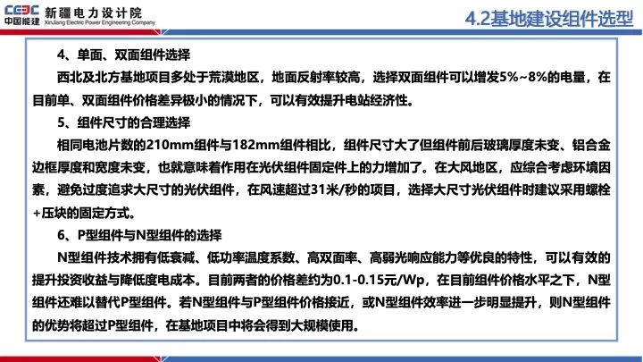 中國能建新疆電力設計院表示,“大基地”時代組件選型主要考慮以下幾個方面: