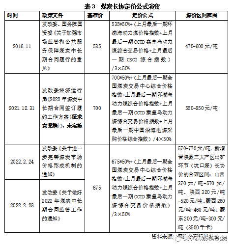 煤炭長(zhǎng)協(xié)定價(jià)公式的演變?nèi)绫?所示。