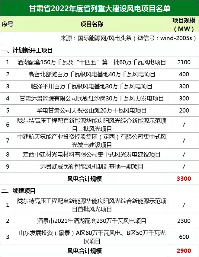 國(guó)際能源網(wǎng)/風(fēng)電頭條(微信號(hào):wind-2005s)獲悉,近日,甘肅省發(fā)改委發(fā)布《2022年度省列重大建設(shè)項(xiàng)目名單》。文件指出,甘肅省2022年度省列重大建設(shè)項(xiàng)目共234個(gè),其中計(jì)劃新開(kāi)工項(xiàng)目80個(gè),續(xù)建項(xiàng)目138個(gè),預(yù)備項(xiàng)目16個(gè)。