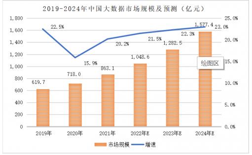 近年來我國大數(shù)據(jù)行業(yè)取得快速發(fā)展,賽迪CCID統(tǒng)計,我國大數(shù)據(jù)市場規(guī)模由2019年的619.7億元增長至2021年的863.1億元,復(fù)合年增長率達(dá)到18.0%,大數(shù)據(jù)市場規(guī)模包含了大數(shù)據(jù)相關(guān)硬件、軟件、服務(wù)市場收入。在全球新冠肺炎疫情之下,我國經(jīng)濟率先復(fù)蘇并總體保持恢復(fù)態(tài)勢,伴隨國家快速推動數(shù)字經(jīng)濟、數(shù)字中國、智慧城市等發(fā)展建設(shè),未來大數(shù)據(jù)行業(yè)對經(jīng)濟社會的數(shù)字化創(chuàng)新驅(qū)動、融合帶動作用將進(jìn)一步增強,應(yīng)用范圍將得到進(jìn)一步拓寬,大數(shù)據(jù)市場也將保持持續(xù)快速的增長態(tài)勢。預(yù)計2024年我國大數(shù)據(jù)市場規(guī)模將達(dá)到1,577.4億元,未來三年復(fù)合年增長率22.6%。