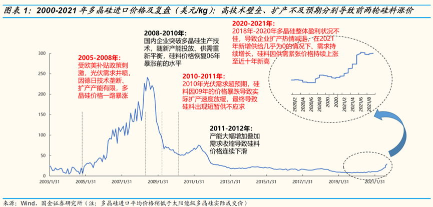 只可惜,產(chǎn)線建了一半,2018年國家便宣布了明確對光伏建設(shè)控規(guī)模、降補(bǔ)貼的531新政,行業(yè)一片哀嚎。此后相當(dāng)長一段時(shí)間里,硅料的價(jià)格都持續(xù)在低位,到了2020年硅料的價(jià)格,更是一度降到了僅80元每公斤的歷史低價(jià)。