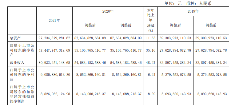 隆基股份2021年年報(bào)數(shù)據(jù)顯示:報(bào)告期內(nèi),公司實(shí)現(xiàn)營業(yè)收入809.32億元,同比增長48.27%;實(shí)現(xiàn)歸屬于上市公司股東的凈利潤90.86億元,其中歸屬于上市公司股東的扣除非經(jīng)常性損益的凈利潤88.26億元;綜合毛利率20.19%,資產(chǎn)負(fù)債率為51.31%降8.07個(gè)百分點(diǎn)。隆基股份表示,2022年計(jì)劃實(shí)現(xiàn)營業(yè)收入超過1000億元。