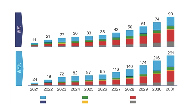 到2031年,美國(guó)市場(chǎng)將增長(zhǎng)7倍,遠(yuǎn)超過(guò)美洲地區(qū)的其他國(guó)家。