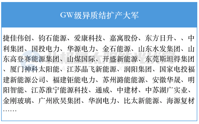 從追隨企業(yè)來看,除了東方日升、愛康科技、中利集團(tuán)、嘉寓股份等傳統(tǒng)電池組件企業(yè)外,兩類企業(yè)備受關(guān)注。一類為設(shè)備企業(yè),如捷佳偉創(chuàng)、鈞石能源等,或單獨(dú)推進(jìn)GW規(guī)模的電池組件量產(chǎn),或與產(chǎn)業(yè)鏈企業(yè)攜手共進(jìn);另一類為跨界企業(yè),如山煤國際、明陽智能等,前者設(shè)立合資公司擬投建10GW高效異質(zhì)結(jié)電池項(xiàng)目,一期3GW;后者異質(zhì)結(jié)電池組件項(xiàng)目已開工建設(shè),預(yù)計(jì)年內(nèi)投產(chǎn)。