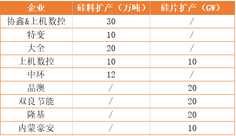 近日,隆基、中環(huán)先后宣布將新擴(kuò)產(chǎn)能均布局在內(nèi)蒙地區(qū)。3月12日,隆基股份與鄂爾多斯市人民政府、伊金霍洛旗人民政府簽訂了投資合作協(xié)議,擬建設(shè)年產(chǎn)20 GW單晶硅棒和切片項(xiàng)目、30 GW高效單晶電池項(xiàng)目及5 GW高效光伏組件,共計(jì)投資195億元。4月7日,中環(huán)股份與內(nèi)蒙古人民政府和呼和浩特市人民政府就共同在呼和浩特市投資建設(shè)內(nèi)蒙古中環(huán)產(chǎn)業(yè)城項(xiàng)目群達(dá)成合作事宜,建設(shè)內(nèi)容包括產(chǎn)能合計(jì)約12萬(wàn)噸高純多晶硅項(xiàng)目、半導(dǎo)體單晶硅材料及配套項(xiàng)目、國(guó)家級(jí)硅材料研發(fā)中心項(xiàng)目,計(jì)劃總投資約206億元。