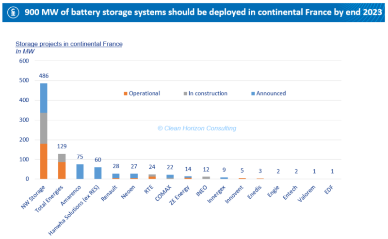 盡管目前只有兩種收益模式,但依舊沒(méi)有阻擋儲(chǔ)能投資商的熱情,目前法國(guó)單體最大項(xiàng)目的投資商為道達(dá)爾能源,位于法國(guó)北部敦刻爾克的 TotalEnergies 煉油廠的 BESS 產(chǎn)能目前分兩期為 61MW/61MWh,最近一次新增的36MW/36MWh是在 2021 年底前不久完成的。這家能源巨頭在法國(guó)擁有103MW的容量市場(chǎng)合同儲(chǔ)能在線(xiàn)或即將上線(xiàn)。然而有趣的是,盡管其擁有了該國(guó)最大的單個(gè)項(xiàng)目,TotalEnergies 在Clean Horizon 的法國(guó)最多產(chǎn)(公開(kāi)宣布)的電池存儲(chǔ)項(xiàng)目所有者和開(kāi)發(fā)商圖表中僅排名第二。