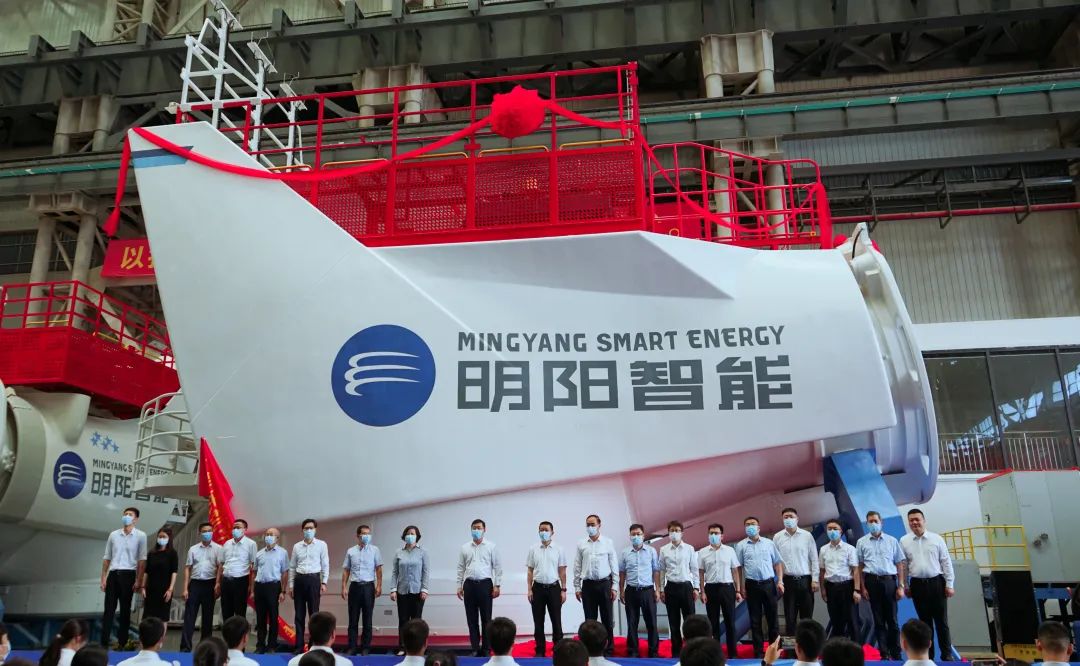 6月1日,適逢明陽(yáng)集團(tuán)29周年廠慶之際,MySE12MW半直驅(qū)海上機(jī)組下線儀式在廣東明陽(yáng)智能汕尾海上高端裝備制造基地隆重舉行。