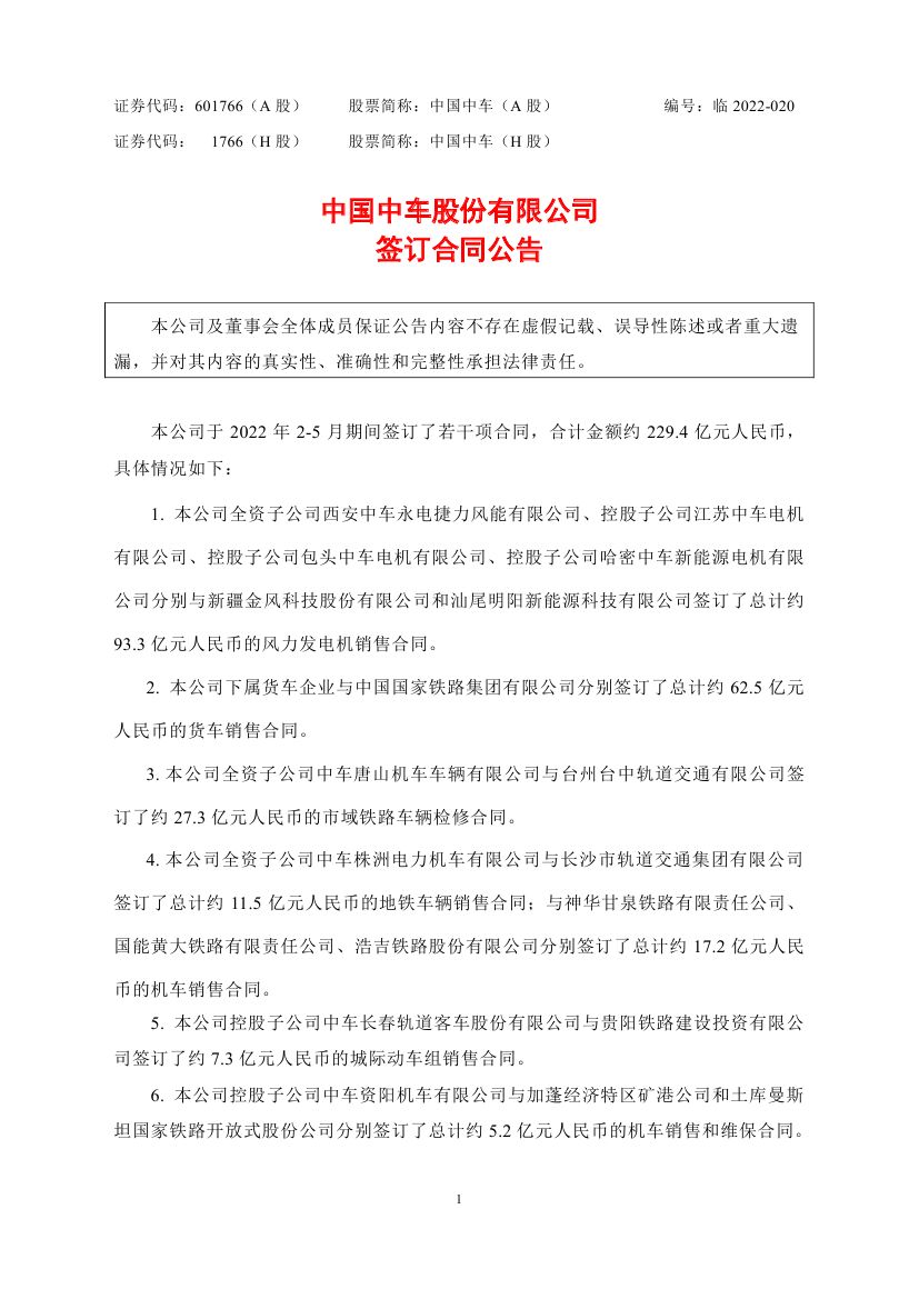 6月7日,中國中車發(fā)布簽訂合同公告,根據(jù)公告:中國中車集團全資子公司西安中車永電捷力風能有限公司、控股子公司江蘇中車電機有限公司、控股子公司包頭中車電機有限公司、控股子公司哈密中車新能源電機有限公司分別與金風科技和汕尾明陽新能源科技有限公司簽訂了總計約93.3 億元人民幣的風力發(fā)電機銷售合同。全資子公司山東中車風電有限公司與陜西中洋建設工程有限公司和深能北方(蘇尼特左旗)能源開發(fā)有限公司分別簽訂了總計約 5.1億元人民幣的風力發(fā)電機銷售合同。金額共計98.4億元。