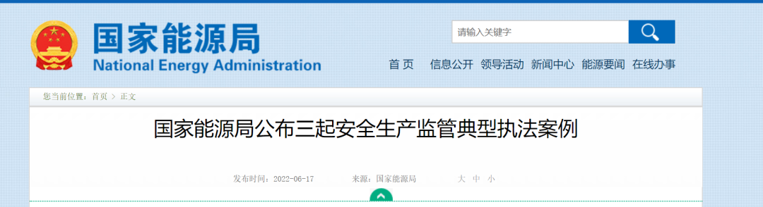 風芒能源獲悉,近日,國家能源局發(fā)布三起安全生產監(jiān)管典型執(zhí)法案例。