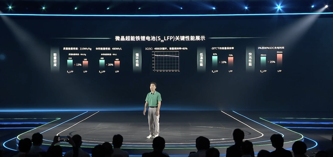 在磷酸鐵鋰電池一貫的優(yōu)勢(shì)上,微晶超能鐵鋰電池在循環(huán)4000次之后容量保持率還可以維持在80%以上,電池壽命可以達(dá)到150萬公里。這一數(shù)據(jù)甚至超過了比亞迪的刀片電池,目前比亞迪的刀片電池可充放電3000次以上,電池壽命為120萬公里。