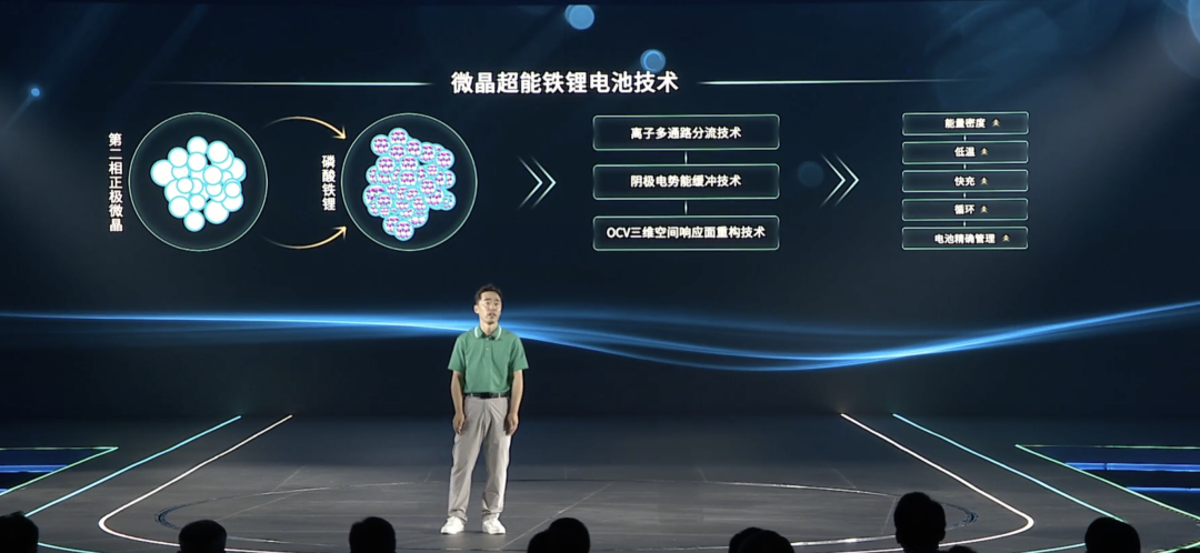 就在今天,廣汽集團(tuán)在科技日活動(dòng)上發(fā)布了一款全新的電池產(chǎn)品——微晶超能鐵鋰電池。通過在磷酸鐵鋰電池中引入第二相正極微晶,以及三項(xiàng)創(chuàng)新技術(shù),改善了磷酸鐵鋰電池的能量密度、低溫、快充、循環(huán)等性能。