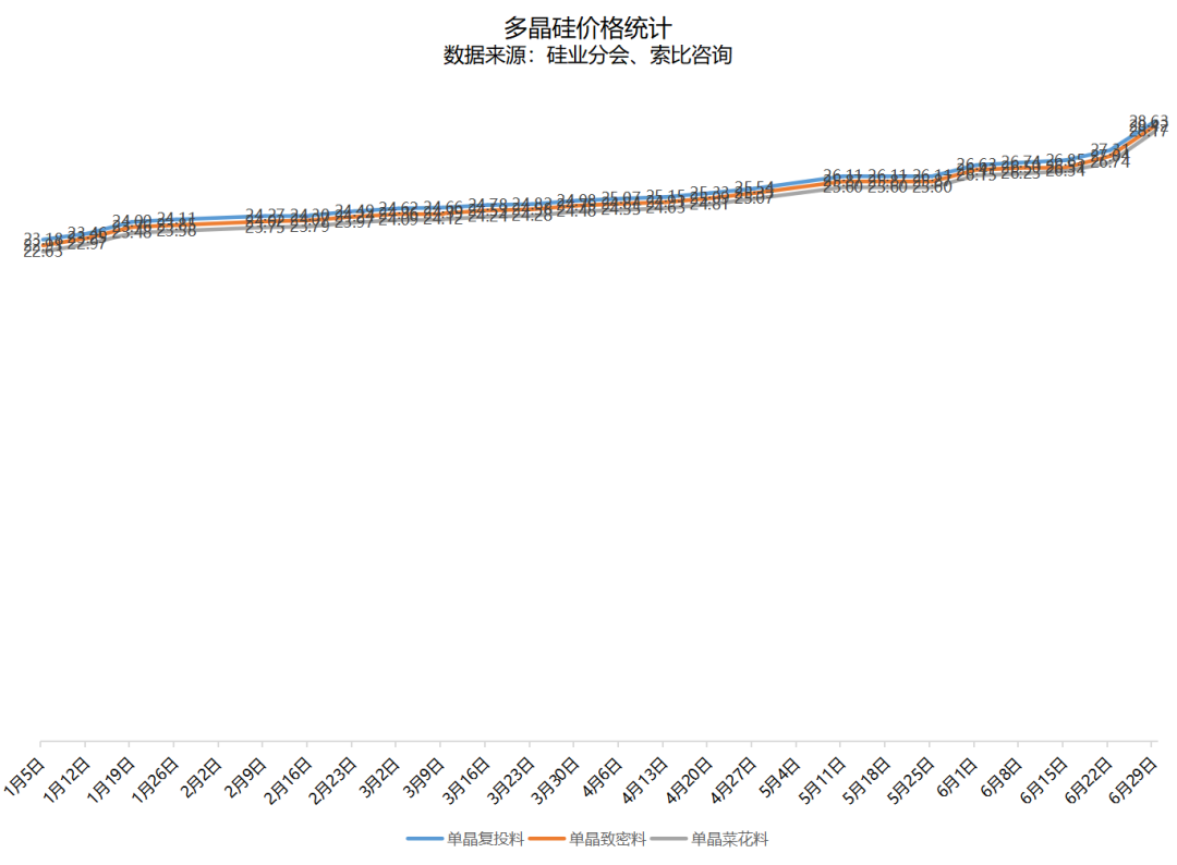 6月29日,中國有色金屬工業(yè)協(xié)會硅業(yè)分會公布了太陽能級多晶硅最新價格。
