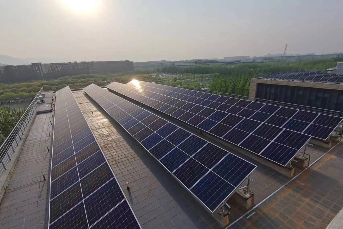 在供電側(cè),通過(guò)綠色電力替代,加速低碳轉(zhuǎn)型。利用大廈1300m2的屋頂面積,共安裝208塊光伏組件,每塊組件功率540Wp,總裝機(jī)容量為112.32kW。根據(jù)北京往年的光照強(qiáng)度和時(shí)長(zhǎng),每年預(yù)計(jì)可產(chǎn)生約12萬(wàn)kWh的綠色電力,經(jīng)過(guò)逆變、匯流后接入大廈供電系統(tǒng),最終全部用于大廈IDC機(jī)房、辦公區(qū)空調(diào)和照明系統(tǒng)等電力開(kāi)銷(xiāo)。