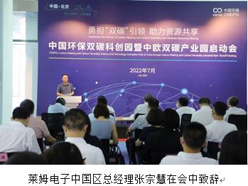 2022年7月5日上午,由中國(guó)環(huán)境保護(hù)集團(tuán)(簡(jiǎn)稱"中國(guó)環(huán)保")打造的"中國(guó)環(huán)保雙碳科創(chuàng)園暨中歐雙碳產(chǎn)業(yè)園"(以下簡(jiǎn)稱"園區(qū)")啟動(dòng)會(huì)暨雙碳戰(zhàn)略座談會(huì)在北京順義召開。萊姆電子作為已入駐中歐雙碳產(chǎn)業(yè)園內(nèi)的優(yōu)秀企業(yè),攜同中國(guó)瑞士商會(huì)等受邀并出席了本次大會(huì)。