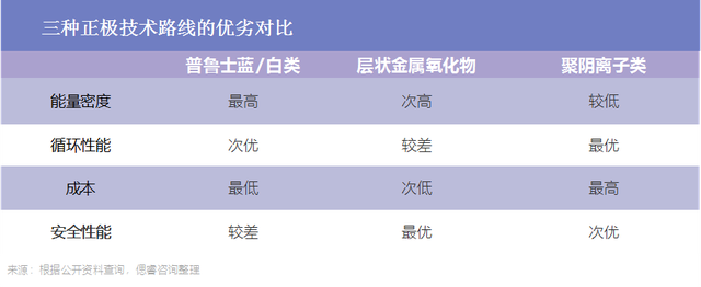 綜合研究得知,三種技術(shù)路線各有所長(zhǎng),并無(wú)明顯的優(yōu)劣之分,且均已有產(chǎn)品面世。但在已有投產(chǎn)下線的13家企業(yè)中,選擇層狀金屬氧化物和普魯士藍(lán)類路線的企業(yè)數(shù)量明顯多于聚陰離子類路線企業(yè)。
