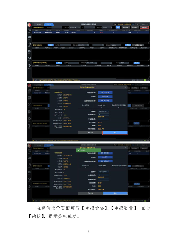 (三)排交所已根據(jù)主管部門(mén)要求舉辦了競(jìng)價(jià)培訓(xùn)會(huì),講解了規(guī)則、流程及相關(guān)注意事項(xiàng),并做了操作演示。如仍有疑問(wèn),可咨詢解先生、詹先生,咨詢電話:0755-86931919、0755-86938966。