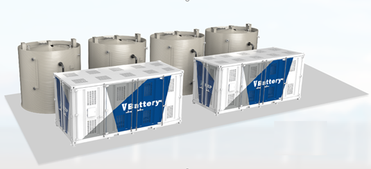 因為釩電池的電解液和電堆是相互獨(dú)立的,電解液單獨(dú)存放在外部的儲罐中,另外由于電解液是無法單獨(dú)流向電堆的,需要通過外部的泵和管路輸送內(nèi)部。