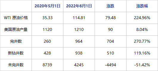 從上圖可以看出,今年雖然俄烏沖突將油價(jià)推升至高位,但美國(guó)原油產(chǎn)量卻沒(méi)有出現(xiàn)顯著增長(zhǎng)。目前與年初相比美國(guó)原油產(chǎn)量增幅僅2.54%,整體走勢(shì)相對(duì)平緩,高油價(jià)帶來(lái)的利潤(rùn)刺激似乎沒(méi)有顯現(xiàn)。國(guó)際油價(jià)強(qiáng)勢(shì)背景下,為何美國(guó)原油產(chǎn)量卻提升緩慢呢?
