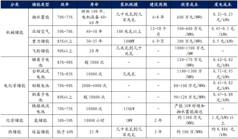 ▲各種儲能技術對比
