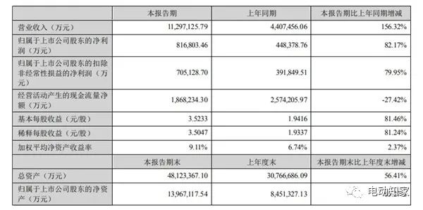 同時(shí),公司董事會(huì)審議通過了15.9億元現(xiàn)金的分紅預(yù)案,擬以公司目前總股本24.4億股為基數(shù),向全體股東每10股派發(fā)現(xiàn)金紅利6.528元(含稅)。值得注意的是,據(jù)此前官方公布的數(shù)據(jù),寧德時(shí)代Q1凈利14.93億元,據(jù)此計(jì)算Q2凈利66.77億元,環(huán)比增長(zhǎng)347%。