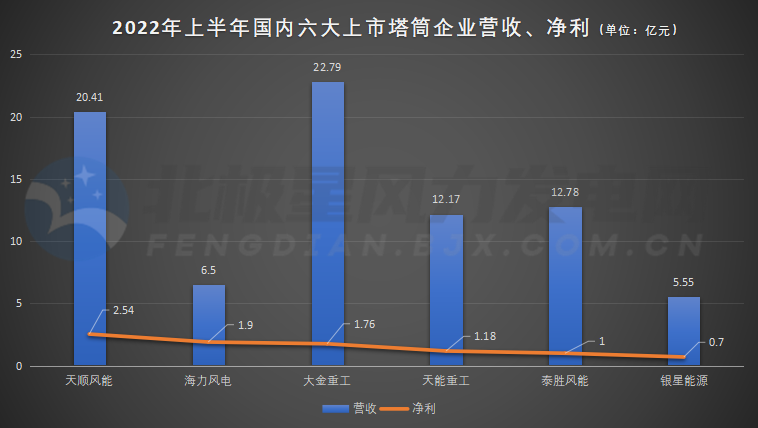 上半年,全國風電新增并網(wǎng)裝機1294萬千瓦,其中陸上風電新增裝機1206萬千瓦、海上風電新增裝機27萬千瓦。海上風電增長放緩,疊加平價背景下的利潤空間降低,疫情反復(fù)等影響,國內(nèi)主要塔筒上市企業(yè)利潤增長均不及預(yù)期。近日,天順風能、大金重工、泰勝風能、天能重工、海力風電、銀星能源先后公布了2022年上半年成績單。