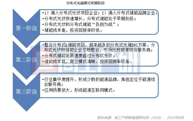 分布式光儲(chǔ)模式將經(jīng)歷三個(gè)階段。當(dāng)前,分布式光儲(chǔ)模式正處于規(guī)?;l(fā)展前期。