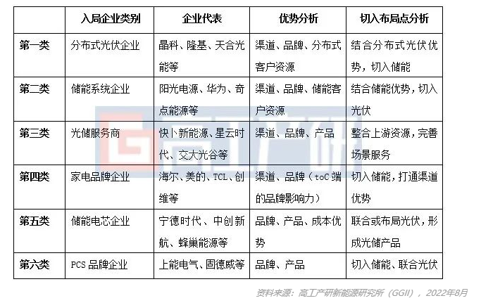 光儲(chǔ)業(yè)務(wù)入局者分析