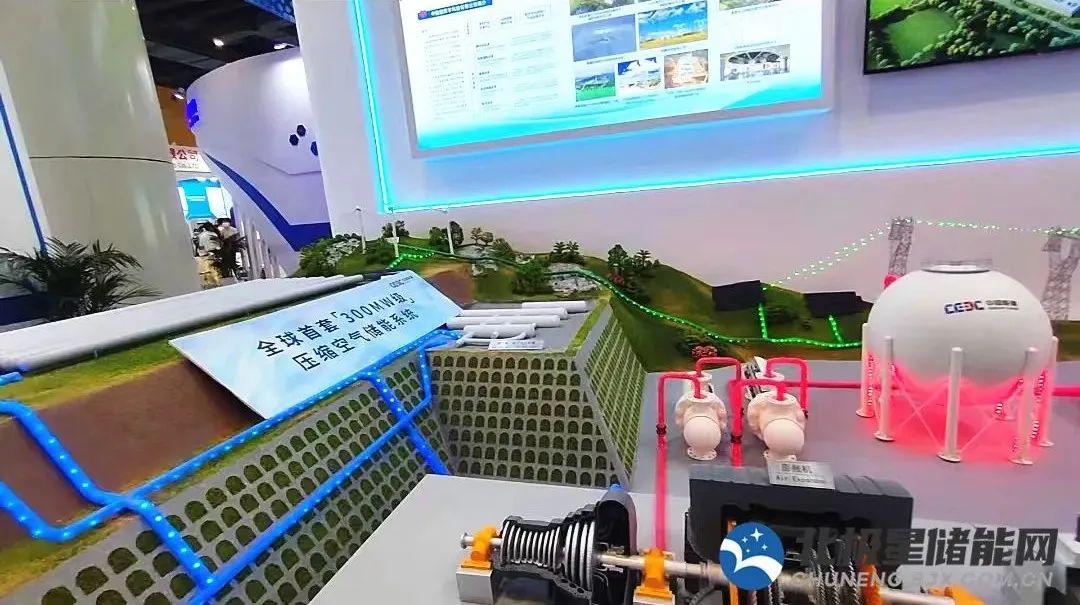 嚴格意義上來說,二氧化碳屬于一種氣體為介質(zhì)的儲能技術(shù),而選中氣體儲能技術(shù)路線的還有中國能建,其“全球首套300MW級壓縮空氣儲能系統(tǒng)”沙盤,成了清潔能源裝備展會熱門打卡點之一。據(jù)了解,中國能建目前已有多個300MW級壓縮空氣儲能項目正在有序推進。