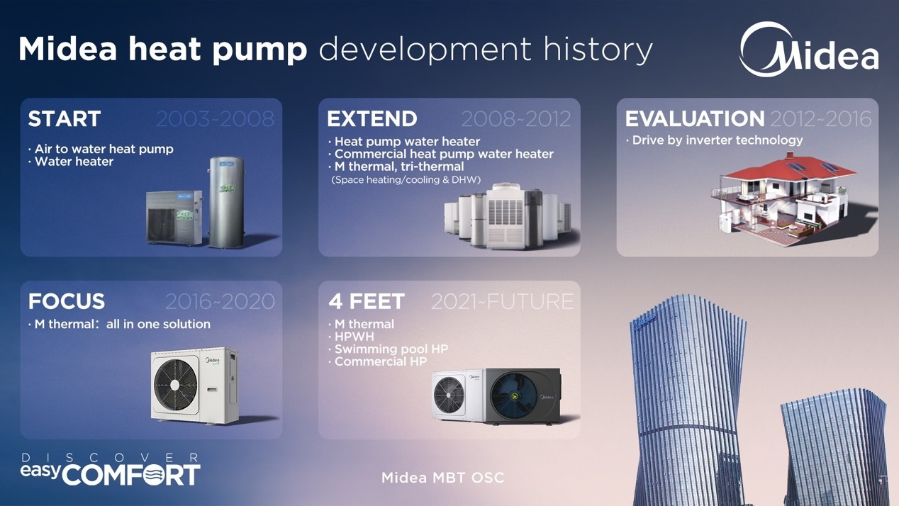 目前,美的樓宇科技已打造出空氣源和水源熱泵等多產(chǎn)品序列,包括用于工程采暖的烈焰系列、戶(hù)式采暖的暖家系列,熱水采暖的熱泉、涌泉系列。應(yīng)用場(chǎng)景覆蓋工農(nóng)生產(chǎn)、商業(yè)綜合體、軌交基建等。此外,2022上半年,美的樓宇科技全變頻風(fēng)冷冷水(熱泵)機(jī)組、MDV FIT機(jī)組、模塊化蒸發(fā)冷渦旋冷水機(jī)組先后發(fā)布,進(jìn)一步夯實(shí)業(yè)務(wù)版圖。此外,與上海航天合作開(kāi)發(fā)NYR100模塊化熱水方艙,模塊預(yù)制、便捷安裝、智能物聯(lián),為疫情防控帶來(lái)“美的”溫度。美的MDV8系列多聯(lián)式空調(diào)(熱泵)機(jī)組海外上市,先后被授予“專(zhuān)特節(jié)精產(chǎn)品”證書(shū)、低碳認(rèn)證證書(shū)和碳足跡評(píng)價(jià)證書(shū),同時(shí),MDV8無(wú)界多聯(lián)機(jī)也榮獲了Intertek頒發(fā)的多張Tick-Mark性能認(rèn)證。