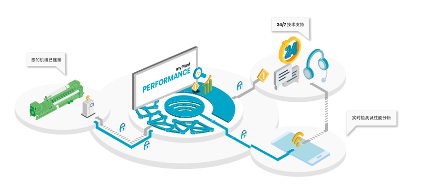 作為全球領(lǐng)先的能源解決方案及服務(wù)供應(yīng)商——顏巴赫不止提供卓越的燃?xì)獍l(fā)電機(jī)組。在先進(jìn)的數(shù)字技術(shù)和云端解決方案的支持下,顏巴赫還提供全面的數(shù)字產(chǎn)品——myPlant*,以滿(mǎn)足客戶(hù)精益求精的運(yùn)營(yíng)需求。myPlant*是顏巴赫燃?xì)獍l(fā)電機(jī)組的遠(yuǎn)程設(shè)備性能管理方案,它的功能包括實(shí)時(shí)監(jiān)測(cè)發(fā)電機(jī)組運(yùn)行狀況,預(yù)測(cè)機(jī)組運(yùn)行趨勢(shì),提供專(zhuān)業(yè)運(yùn)行優(yōu)化建議并支持遠(yuǎn)程檢測(cè)、排障,從而有效縮短停機(jī)時(shí)間,有效避免服務(wù)人員的非必要差旅成本,提高機(jī)組的在線(xiàn)率,最終幫助客戶(hù)實(shí)現(xiàn)節(jié)約整體運(yùn)營(yíng)成本,提升盈利能力的商業(yè)目標(biāo)。