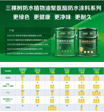 三棵樹(shù)植物油聚氨酯防水涂料的面市解決了建筑聚氨酯防水涂料中含有有毒增塑劑的防水涂料技術(shù)瓶頸問(wèn)題;大大降低聚氨酯涂料使用過(guò)程中VOC的排放量,保護(hù)施工工人生命安全,助力防水材料高品質(zhì)發(fā)展,推進(jìn)行業(yè)低碳化和可持續(xù)發(fā)展方向進(jìn)程。