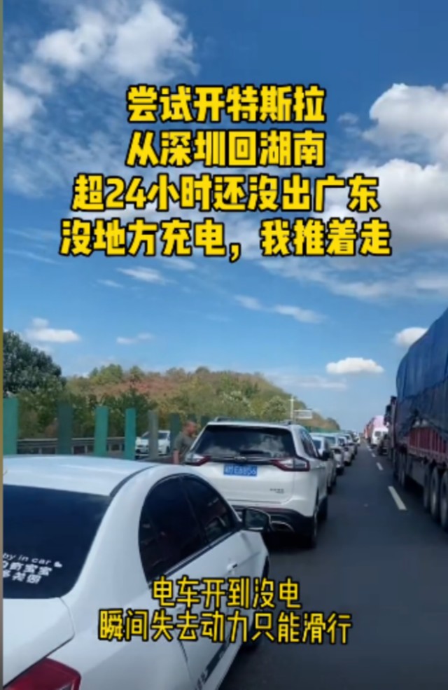 不過,今年國慶假期的堵車卻讓新能源車倍感尷尬,這也是今年國慶假期堵車受到國人關(guān)注的原因所在。原來是今年國慶節(jié)當(dāng)天,一位在深圳工作的湖南人,自己開特斯拉從深圳回湖南老家,不料被堵在路上,超24小時還沒出廣東,最后車輛電量耗盡。而實際上為了回湖南,這位車主還提前做了充分的準(zhǔn)備,提前一天充滿了電,就是怕遇到堵車,結(jié)果怕什么來什么,24小時都讓他出不了廣東,最后只好花2000元叫拖車,連人帶車拖出高速,下高速后充了電再出發(fā),這樣才安全回到老家。