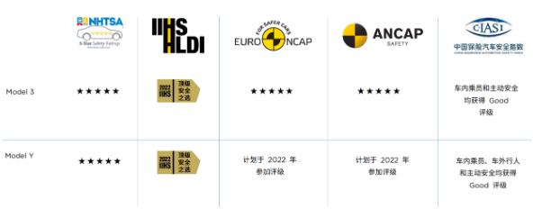 圖:特斯拉車輛的“五星安全”評(píng)級(jí)