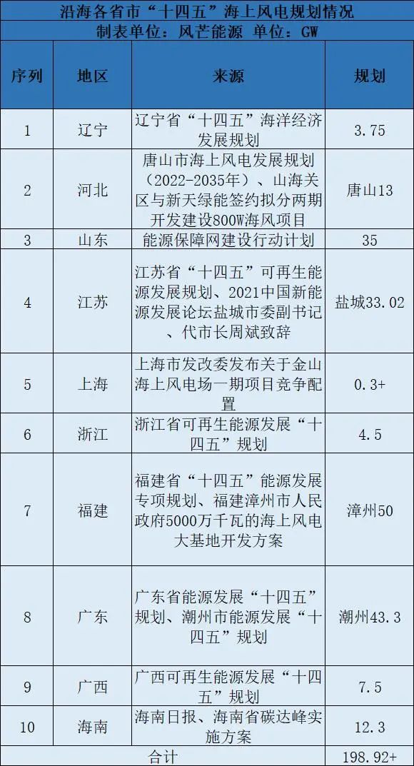 沿海各省市海上風(fēng)電“十四五”規(guī)劃陸續(xù)出爐。