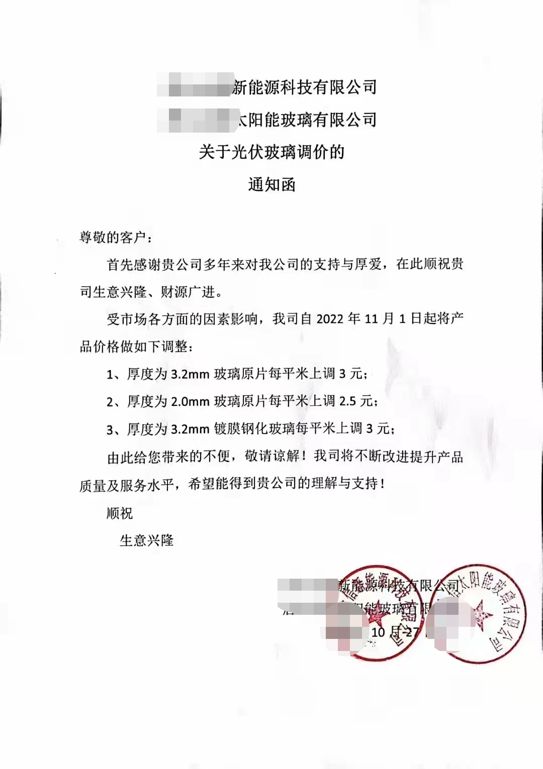 除了電池之外,近日有消息稱,光伏玻璃也在醞釀漲價,根據(jù)某企業(yè)調價函,玻璃價格上漲2.5-3元/平方米。