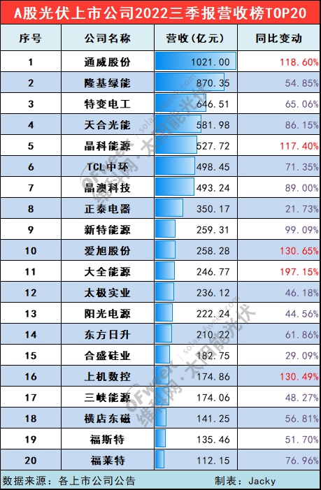 光伏上市公司2022年三季報營收榜TOP20(圖源:維科網(wǎng)光伏)