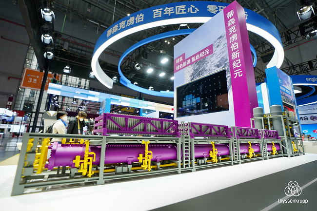 在進博會的展臺上,蒂森克虜伯集中展示了覆蓋碳中和價值鏈需求端、供給端和基礎設施端的先進技術和解決方案。