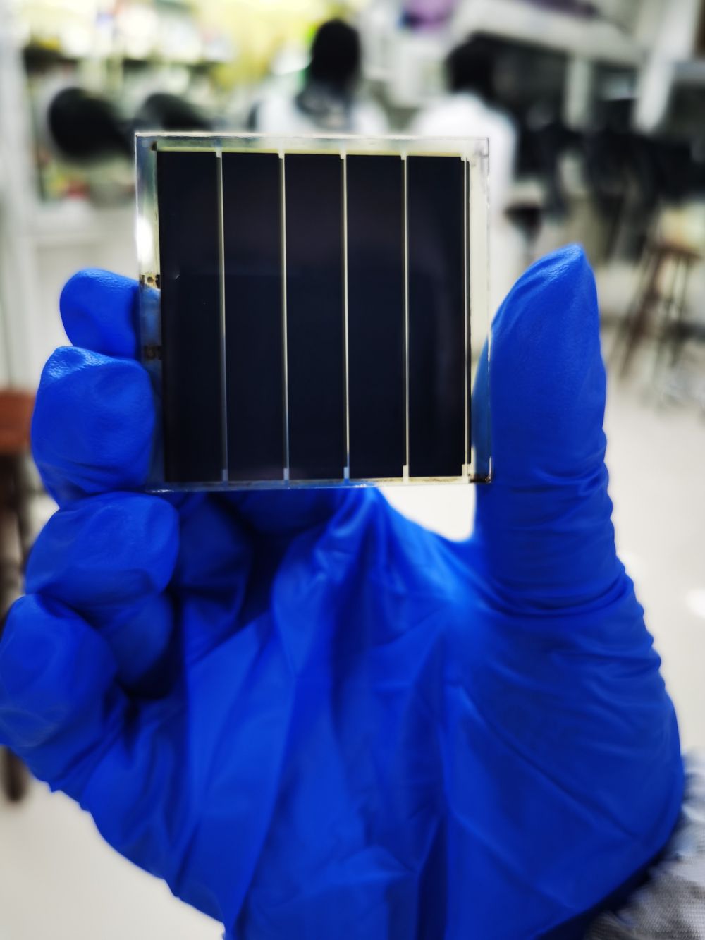 2022年6月20日,這是南京工業(yè)大學(xué)陳永華教授團(tuán)隊用絲網(wǎng)印刷技術(shù)生產(chǎn)的鈣鈦礦光伏器件。(受訪者供圖)