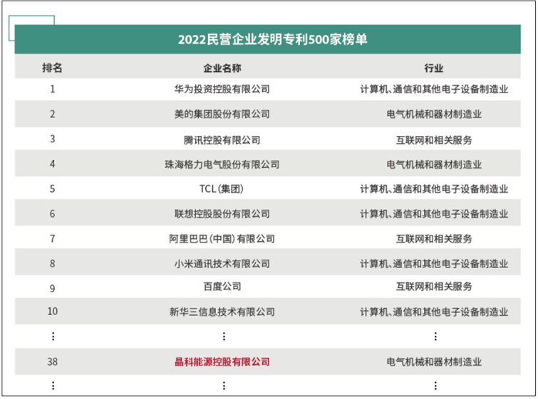 10月13日,全國工商聯(lián)辦公廳發(fā)布2022民營企業(yè)研發(fā)投入和發(fā)明專利500強(qiáng)榜單。全球極具創(chuàng)新力的光伏企業(yè)晶科能源憑借超強(qiáng)的研發(fā)實(shí)力成功入圍。值得一提的是,在入榜的組件類企業(yè)中,晶科能源的發(fā)明專利排名第一,企業(yè)創(chuàng)新水平及品牌實(shí)力得到了充分肯定與彰顯。