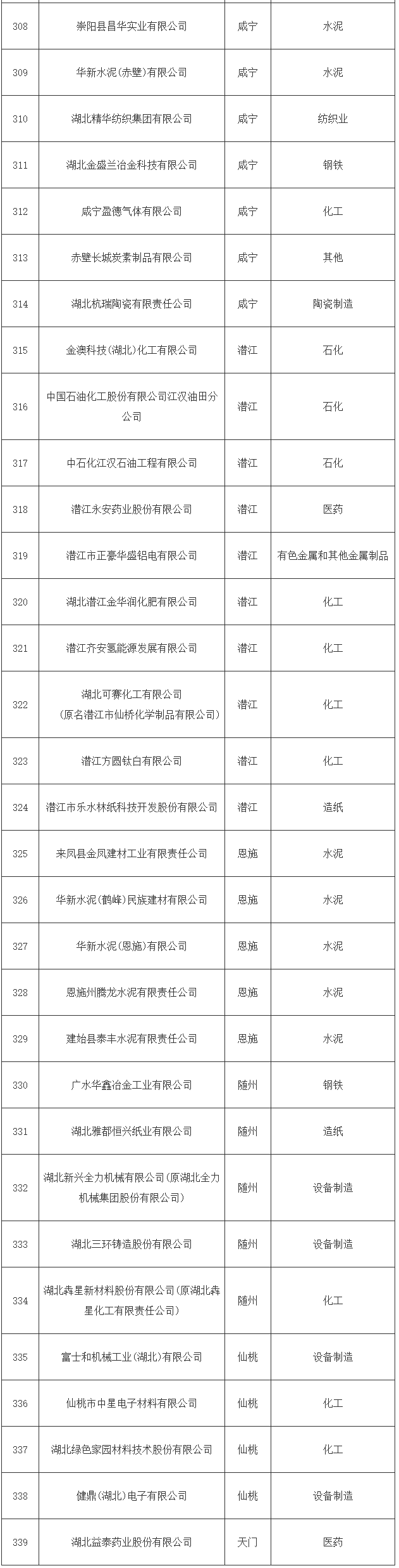 根據(jù)我省2018-2021年任一年綜合能耗1萬噸標(biāo)準(zhǔn)煤及以上的工業(yè)企業(yè)能耗情況,排除因關(guān)停、主體整合以及全面停產(chǎn)等原因退出的企業(yè)后,確定339家納入我省2021年度碳排放配額管理范圍的企業(yè)(以下簡稱“納入企業(yè)”),涉及鋼鐵、水泥、化工等16個行業(yè)。具體企業(yè)見湖北省2021年度納入碳排放配額管理企業(yè)清單(見附件1-4)。